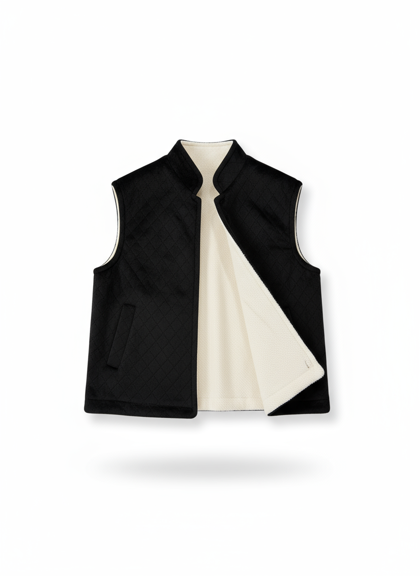 A stylish, reversible baby bib made from high-quality fabrics with a stylish quilted design. It provides warmth and comfort for your baby and can be worn in two different ways. Ideal for everyday use and special occasions.